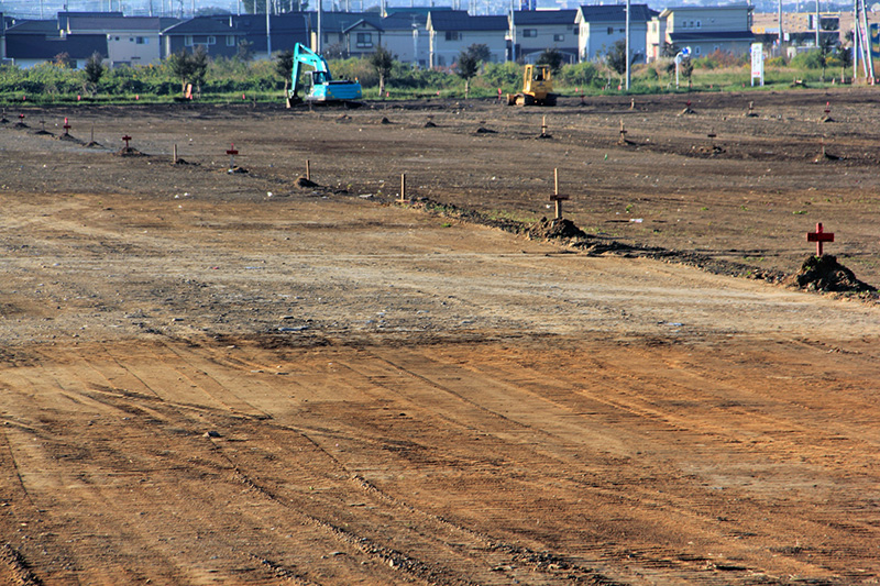造成工事の中で最もシンプルな方法です。建物の解体後に発生したコンクリート片や石、木くず、ガラス片などを手作業や重機で取り除き、土地を転圧機で締め固めます。